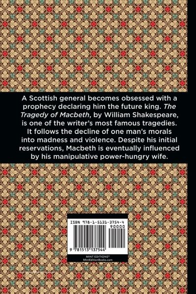 LARGE PRINT EDITION. Macbeth, a successful solider, is visited by Three Witches who claim he will soon become king, but his ascension may be thwarted by other parties. Macbeth is driven by ambition and takes drastic steps to secure his place on the throne. After a successful military career in the Scottish army, Macbeth receives life-changing news. Three Witches deliver a prophesy stating that he will be the country's future king. He shares this information with his wife, Lady Macbeth, who is intrigued by his fate. The duo is concerned about potential threats to his position including the king's son Malcolm and the army captain, Banquo. Macbeth becomes obsessed with the prophesy, committing acts of violence towards the current King Duncan, his heir and the captain. As Macbeth's desire for power grows, so does the bloodshed across the kingdom. Macbeth is a haunting prophecy that hinges on the moral decisions of its protagonist. This captivating story highlights the many flaws of man including ego, greed and fear. It's a brilliant character-driven piece that's one of Shakespeare's most adapted and performed plays. With an eye-catching new cover, and professionally typeset manuscript, this edition of Macbeth is both modern and readable. Since our inception in 2020, Mint Editions has kept sustainability and innovation at the forefront of our mission. Each and every Mint Edition title gets a fresh, professionally typeset manuscript and a dazzling new cover, all while maintaining the integrity of the original book. With thousands of titles in our collection, we aim to spotlight diverse public domain works to help them find modern audiences. Mint Editions celebrates a breadth of literary works, curated from both canonical and overlooked classics from writers around the globe.