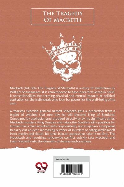 Macbeth (full title The Tragedy of Macbeth) is a story of misfortune by William Shakespeare; it is remembered to have been first acted in 1606. It sensationalizes the harming physical and mental impacts of political aspiration on the individuals who look for power for the well-being of its own. A fearless Scottish general named Macbeth gets a prediction from a triplet of witches that one day he will become King of Scotland. Consumed by aspiration and prodded to activity by his significant other, Macbeth murders King Duncan and takes the Scottish lofty position for himself. He is then wracked with responsibility and suspicion. Compelled to carry out an ever-increasing number of murders to safeguard himself from enmity and doubt, he turns into an oppressive ruler in no time. The bloodbath and resulting nationwide conflict quickly take Macbeth and Lady Macbeth into the domains of demise and craziness.