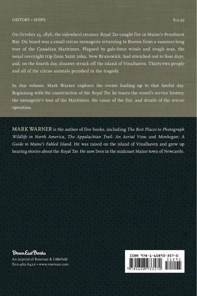 On October 25, 1836, the sidewheel steamer Royal Tar caught fire in Maine's Penobscot Bay. On board was a small circus menagerie returning to Boston from a summer-long tour of the Canadian Maritimes. Plagued by gale-force winds and rough seas, the usual overnight trip from Saint John, New Brunswick, stretched out to four days and, on the fourth day, disaster struck off the island of Vinalhaven. Thirty-two people and all of the circus animals perished in the tragedy. Mark Warner explores the events leading up to that fateful day. Beginning with the construction of the Royal Tar, he traces the vessel's service history, the menagerie's tour of the Maritimes, the cause of the fire, and details of the rescue operation.