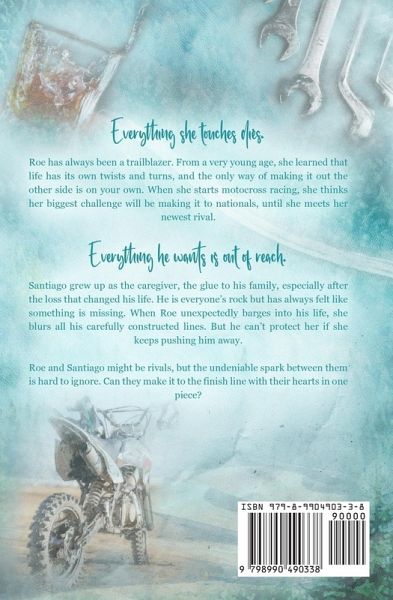 Everything she touches dies. Roe has always been a trailblazer. From a very young age, she learned that life has its own twists and turns, and the only way of making it out the other side is on your own. When she starts motocross racing, she thinks her biggest challenge will be making it to nationals, until she meets her newest rival. Everything he wants is out of reach. Santiago grew up as the caregiver, the glue to his family, especially after the loss that changed his life. He is everyone's rock but has always felt like something is missing. When Roe unexpectedly barges into his life, she blurs all his carefully constructed lines. But he can't protect her if she keeps pushing him away. Roe and Santiago might be rivals, but the undeniable spark between them is hard to ignore. Can they make it to the finish line with their hearts in one piece?