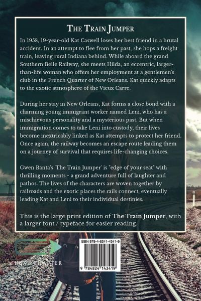 In 1958, 19-year-old Kat Caswell loses her best friend in a brutal accident. In an attempt to flee from her past, she hops a freight train, leaving rural Indiana behind. Kat soon discovers that the extreme danger of train jumping is a welcome distraction from her pain. While aboard the grand Southern Belle Railway, she meets Hilda, an eccentric, larger-than-life woman who offers her employment at a gentlemen's club in the French Quarter of New Orleans. Kat quickly adapts to the exotic atmosphere of the Vieux Carre. During her stay in New Orleans, Kat forms a close bond with a charming young immigrant worker named Leni, who has a mischievous personality and a mysterious past. Each girl thrives in the lively environment full of colorful patrons. But when immigration comes to take Leni into custody, their lives become inextricably linked as Kat attempts to protect her friend. Once again, the railway becomes an escape route leading them on a journey of survival that requires life-changing choices. Gwen Banta's 'The Train Jumper' is "edge of your seat" with thrilling moments - a grand adventure full of laughter and pathos. The lives of the characters are woven together by railroads and the exotic places the rails connect, eventually leading Kat and Leni to their individual destinies. This is the large print edition of The Train Jumper, with a larger font / typeface for easier reading.