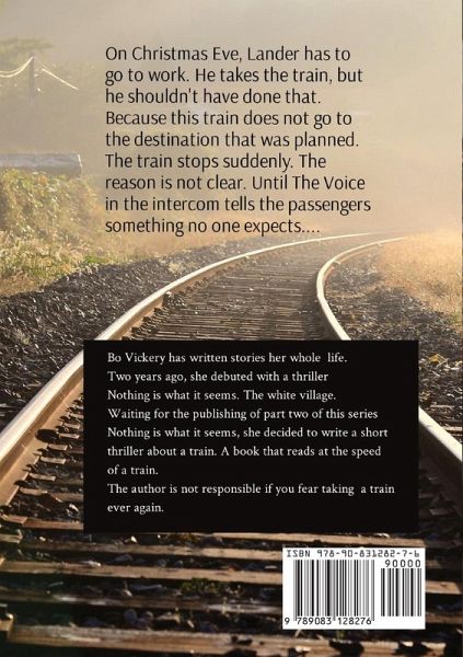 On Christmas Eve, Lander is called to work. He quickly takes the train. But he shouldn't have done that. This train does not go to the planned destination. The train stops suddenly. The reason is not clear. Until The Voice on the intercom tells the passengers something no one expects.... A short suspense thriller by Belgian author Bo Vickery reads like a train. The author is not responsible if you fear taking a train ever again.