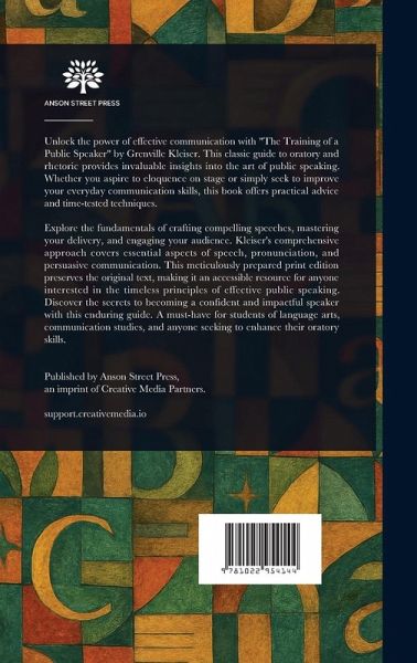 Unlock the power of effective communication with "The Training of a Public Speaker" by Grenville Kleiser. This classic guide to oratory and rhetoric provides invaluable insights into the art of public speaking. Whether you aspire to eloquence on stage or simply seek to improve your everyday communication skills, this book offers practical advice and time-tested techniques. Explore the fundamentals of crafting compelling speeches, mastering your delivery, and engaging your audience. Kleiser's comprehensive approach covers essential aspects of speech, pronunciation, and persuasive communication. This meticulously prepared print edition preserves the original text, making it an accessible resource for anyone interested in the timeless principles of effective public speaking. Discover the secrets to becoming a confident and impactful speaker with this enduring guide. A must-have for students of language arts, communication studies, and anyone seeking to enhance their oratory skills. This work has been selected by scholars as being culturally important, and is part of the knowledge base of civilization as we know it. This work is in the public domain in the United States of America, and possibly other nations. Within the United States, you may freely copy and distribute this work, as no entity (individual or corporate) has a copyright on the body of the work. Scholars believe, and we concur, that this work is important enough to be preserved, reproduced, and made generally available to the public. We appreciate your support of the preservation process, and thank you for being an important part of keeping this knowledge alive and relevant.