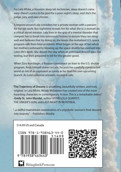 For Lela White, a Houston sleep lab technician, sleep doesn't come easy-there's a price to be paid for a poor night's sleep, and she's the judge, jury, and executioner. Everyone around Lela considers her a private woman with a passion for her lab work. But nighttime reveals her for what she is: a woman on a critical secret mission. Lela lives in the grip of a mental disorder that compels her to break into astronauts' homes to ensure they can sleep well and believes that by doing so, she keeps the revitalized U.S. space program safe from fatal accidents. What began at the age of ten when her mother confessed to blowing up the space shuttle has evolved into Lela's life's work. She dreads the day when an astronaut doesn't pass her testing, but she's prepared to kill for the greater good. When Zory Korchagin, a Russian cosmonaut on loan to the U.S. shuttle program, finds himself drawn to Lela, he puts her carefully-constructed world at risk of an explosion as surely as he does his own upcoming launch. As Lela's universe unravels, no one is safe.