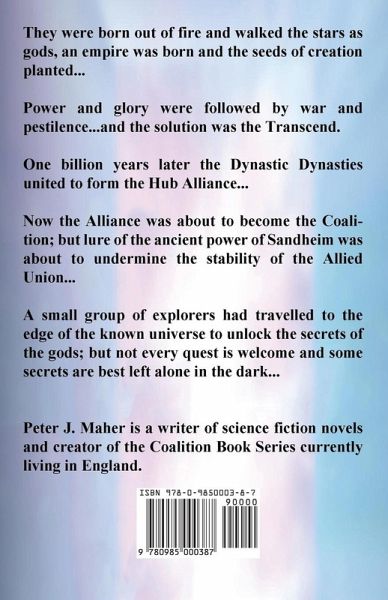 They were born out of fire and walked the stars as gods, an empire was born and the seeds of creation planted... Power and glory were followed by war and pestilence...and the solution was the Transcend. One billion years later the Dynastic Dynasties united to form the Hub Alliance... Now the Alliance was about to become the Coalition; but lure of the ancient power of Sandheim was about to undermine the stability of the Allied Union... A small group of explorers had travelled to the edge of the known universe to unlock the secrets of the gods; but not every quest is welcome and some secrets are best left alone in the dark...