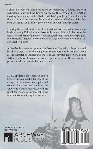 Kalina is a peaceful continent ruled by Rutherford Golding, leader of Kalinaland-South and the Twelve Kingdoms. The arrival of Prince Arthur Golding, born a mutant, fulfills the Evil Rain's prophecy. The realm wants the prince dead because they believe him cursed, so the Queen fakes her son's death and sends him to grow up with another family in secret. The king's betrayal leads to his exile and civil war with several unscrupulous leaders seeking Kalina's throne. Now fully grown, Prince Arthur joins the fight. When the transfiguration takes place, he brings about twelve plagues, monsters, and dragons. He even battles Vikings and divine Nephilim in his conquest for power. A final battle ensues in a place called Nowhere City, where the prince and his allies defend the Twelve Kingdoms from supernatural creatures known as the Dispatched Angels and the four Apocalyptic Horsemen. Prince Arthur was born different and with a specific purpose. He now seeks to prove himself and rewrite his own destiny.