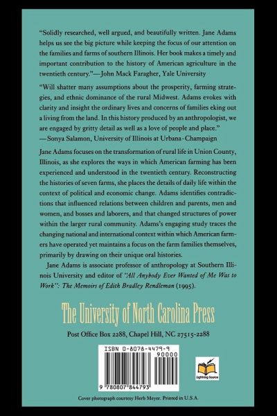 Jane Adams focuses on the transformation of rural life in Union County, Illinois, as she explores the ways in which American farming has been experienced and understood in the twentieth century. Reconstructing the histories of seven farms, she places the details of daily life within the context of political and economic change. Adams identifies contradictions that, on a personal level, influenced relations between children and parents, men and women, and bosses and laborers, and that, more generally, changed structures of power within the larger rural community. In this historical ethnography, Adams traces two contradictory narratives: one stresses plenitude - rich networks of neighbors and kin, the ability to supply families from the farm, the generosity shown to those in need - while the other stresses the acute hardships and oppressive class, gender, and age inequities that characterized farm life. The New Deal and World War II disrupted both patterns, as the increased capital necessary for successful farming forced many to move from agriculture to higher-paid nonfarm work. This shift also changed the structure of the farm household, as homes modernized and women found work off the farm. Adams concludes that large-scale bureaucracies leveled existing class distinctions and that community networks eroded as farmers came to realize an improved standard of living.