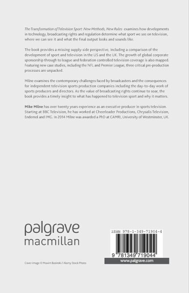 The Transformation of Television Sport: New Methods, New Rules examines how developments in technology, broadcasting rights and regulation combine to determine what sport we see on television, where we can see it and what the final output looks and sounds like.