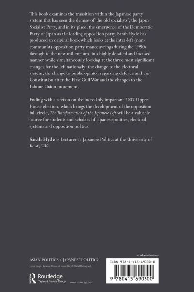 This book examines the transition within the Japanese party system that has seen the demise of 'the old socialists', the Japan Socialist Party, and in its place, the emergence of the Democratic Party of Japan as the leading opposition party.