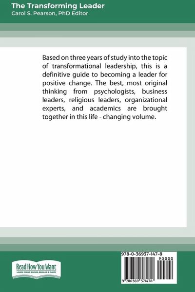 Based on three years of study into the topic of transformational leadership, this is a definitive guide to becoming a leader for positive change. The best, most original thinking from psychologists, business leaders, religious leaders, organizational experts, and academics are brought together in this life - changing volume.