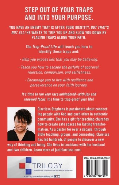 STEP OUT OF YOUR TRAPS AND INTO YOUR PURPOSE. YOU HAVE AN ENEMY THAT IS AFTER YOUR IDENTITY. BUT THAT'S NOT ALL! HE WANTS TO TRIP YOU UP AND SLOW YOU DOWN BY PLACING TRAPS ALONG YOUR PATH. The Trap-Proof Life will teach you how to identify these traps and:Help you expose lies that you may be believing. Teach you how to escape the pitfalls of approval, rejection, comparison, and selfishness. Encourage you to live with resilience and perseverance on your faith journey. It's time to run your race unhindered-with joy and renewed focus. It's time to trap-proof your life!