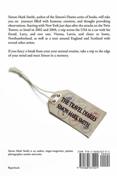Simon Mark Smith, author of the Simon's Diaries series of books, will take you on journeys filled with humour, emotion, and thought-provoking observations. Starting with New York just days after the attacks on the Twin Towers, to Israel in 2002 and 2004, a trip across the USA in a car with his friend, Larry, and two cats, Vienna, Latvia and closer to home, Northumberland, as well as a tour around England and Scotland with several other artists. If you fancy getting away, take a trip to the edge of your mind and meet Simon in a memory.