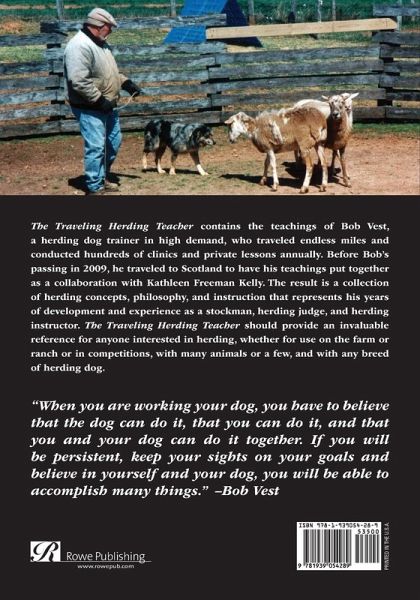 The Traveling Herding Teacher contains the teachings of Bob Vest, a herding dog trainer in high demand, who traveled endless miles and conducted hundreds of clinics and private lessons annually. Before Bob's passing in 2009, he traveled to Scotland to have his teachings put together as a collaboration with Kathleen Freeman Kelly. The result is a collection of herding concepts, philosophy, and instruction that represents his years of development and experience as a stockman, herding judge, and herding instructor. The Traveling Herding Teacher should provide an invaluable reference for anyone interested in herding, whether for use on the farm or ranch or in competitions, with many animals or a few, and with any breed of herding dog. "When you are working your dog, you have to believe that the dog can do it, that you can do it, and that you and your dog can do it together. If you will be persistent, keep your sights on your goals and believe in yourself and your dog, you will be able to accomplish many things."¿-Bob Vest