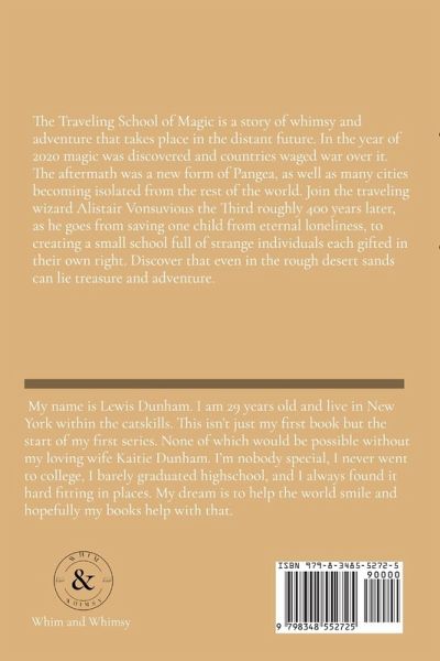 The Traveling School of Magic is a story of whimsy and adventure that takes place in the distant future. In the year of 2020 magic was discovered and countries waged war over it. The aftermath was a new form of Pangea, as well as many cities becoming isolated from the rest of the world. Join the traveling wizard Alistair Vonsuvious the Third roughly 400 years later, as he goes from saving one child from eternal loneliness, to creating a small school full of strange individuals each gifted in their own right. Discover that even in the rough desert sands can lie treasure and adventure.