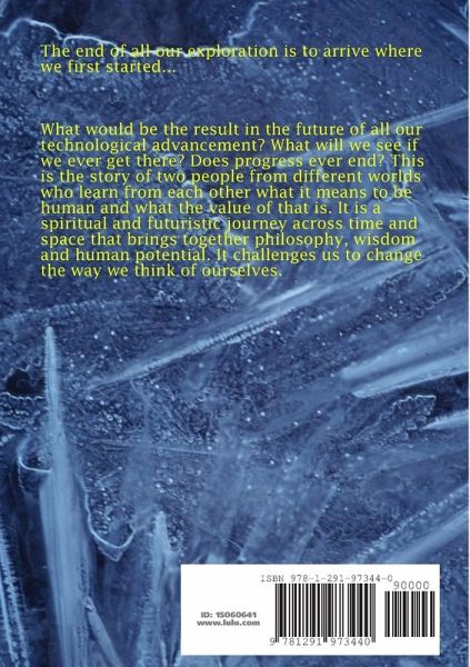 The end of all our exploration is to arrive where we first started... What would be the result in the future of all our technological advancement? What will we see if we ever get there? Does progress ever end? This is the story of two people from different worlds who learn from each other what it means to be human and what the value of that is. It is a spiritual and futuristic journey across time and space that brings together philosophy, wisdom and human potential. It challenges us to change the way we think of ourselves.
