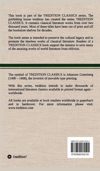 This book (hardcover) is part of the TREDITION CLASSICS. It contains classical literature works from over two thousand years. Most of these titles have been out of print and off the bookstore shelves for decades. The book series is intended to preserve the cultural legacy and to promote the timeless works of classical literature. Readers of a TREDITION CLASSICS book support the mission to save many of the amazing works of world literature from oblivion. With this series, tredition intends to make thousands of international literature classics available in printed format again worldwide.