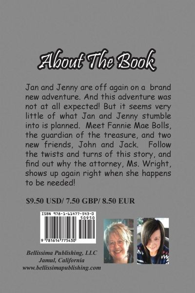 Pamela Hillan and Penelope Dyan are lifelong friends who used to like to pretend they were in a Nancy Drew book when they were kids. As it turned out, when they were all grown up (and then some) they decided to keep right on pretending! And this is how the Jan and Jenny Mystery Series began! Penelope Dyan became a teacher, a published writer, a vocalist, a mother and an attorney, while Pamela Hillan became a mother and a court reporter . . . and then finally . . . everything went back to what it was before all of that happened! And the Jan and Jenny Mystery Series was born! It was their combined lifelong experiences, their imaginations, and their love for the law, along with their desire to make a difference in the world, that led to the creation of each and every one of the Jan & Jenny books, including this latest book, the fourteenth book in the Jan and Jenny Mystery Series, "The Treasure At Misty Cove". Jan and Jenny were supposed to be on a simple vacation at the beach. However, things are seldom simple for Jan and Jenny. A diving lesson, a dive at Misty Cove Cave, and a chance meeting with an old woman, Fannie Mae Bolls, lead the girls and their two newly found friends, Jack and John, on a search for hidden treasure and more! Take part in the excitement as you travel through the pages of "The Treasure At Misty Cove" and find out what Jan and Jenny and their two new friends experienced and why Jan and Jenny are 'that Jan and Jenny'.