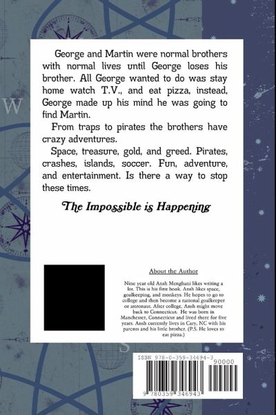 George and Martin are normal kids with normal lives. That is until George's brother Martin gets lost. George just want's to stay home and play video games, read books, and not lose his brother. Instead, he decides to find Martin. From Pirates to Sports, the brothers go through tough times! Is there a way to stop these times? THE IMPOSSIBLE IS HAPPENING! THE TREASURE ESCAPE!