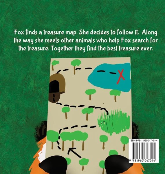 Fox finds a treasure map in the forest. She decides to follow it. Along the way she meets other animal friends who help Fox search for the treasure. Together they find the best treasure ever. A story about friendship and sharing.