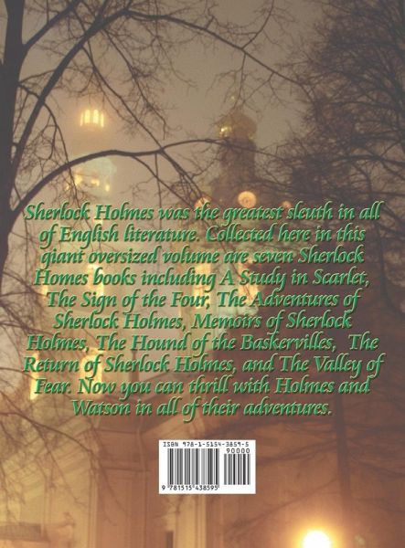 Sherlock Holmes was the greatest sleuth in all of English literature. Collected here in this giant oversized volume are seven Sherlock Homes books including A Study in Scarlet, The Sign of the Four, The Adventures of Sherlock Holmes, Memoirs of Sherlock Holmes, The Hound of the Baskervilles, The Return of Sherlock Holmes, and The Valley of Fear. Now you can thrill with Holmes and Watson in all of their adventures.