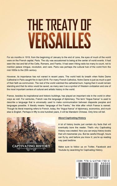 If you want to discover the captivating history of the Treaty of Versailles, then keep reading... The treaty that ended the First World War, also known as the "war to end all wars," was signed at the Palace of Versailles, which had been the home of French kings until 1789 and remains one of the most beautiful structures in the world. Though the men of Versailles (and they were overwhelmingly men) had arrived in Paris to put an end to World War I, by the time the conference ended, the main goal of the diplomats and national leaders had turned into ending wars for all time. Obviously, that did not work, and as a matter of fact, the end result of the Paris Peace Conference-the Treaty of Versailles-would likely cause more wars than any of its authors could have possibly dreamed of, including World War II. In The Treaty of Versailles: A Captivating Guide to the Peace Treaty That Ended World War 1 and Its Impact on Germany and the Rise of Adolf Hitler, you will discover topics such as ¿ Foundations ¿ What Came Before ¿ The Truce and the Run-Up to Versailles ¿ The Allies ¿ The Fourteen Points ¿ The Scrambled Map and People of Europe ¿ The Middle East ¿ Germany ¿ The "Stab-in-the-Back" Myth ¿ The League of Nations Fiasco ¿ And much, much more! So if you want to learn more about the history of the Treaty of Versailles, scroll up and click the "add to cart" button!