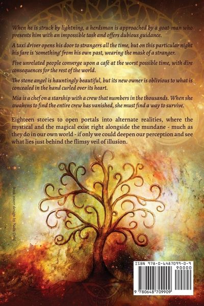 When he is struck by lightning, a herdsman is approached by a goat-man who presents him with an impossible task and offers dubious guidance. A taxi driver opens his door to strangers all the time, but on this particular night his fare is 'something' from his own past, wearing the mask of a stranger. Five unrelated people converge upon a café at the worst possible time, with dire consequences for the rest of the world. The stone angel is hauntingly beautiful, but its new owner is oblivious to what is concealed in the hand curled over its heart. Mia is a chef on a starship with a crew that numbers in the thousands. When she awakens to find the crew has vanished, she must find a way to survive. Eighteen stories to open portals into alternate realities, where the mystical and the magical exist right alongside the mundane - much as they do in our own world - if only we could deepen our perception and see what lies just behind the flimsy veil of illusion.