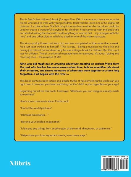 This is Fred's first children's book (for ages 9 to 100). It came about because an artist friend, who used to work with young children, told Fred she loved one of his digital art pictures of a colorful tree. She felt this picture and some others he had done could be used to create a wonderful storybook for children. Fred came up with the book title and started writing the story with hardly anything in mind at first... it just began with the 'tree' and one other picture, which he used for one of the main characters. The story quickly flowed out from him and was completed in little more than a week. Fred just kept thinking to himself, "This is crazy." Being a musician his whole life and having just retired, he wondered why he was writing a book for children. But this is not just for children. There's a universal message here for everyone. It's about 'giving and receiving love' - the purpose of life! Nine year-old Hugh has an amazing adventure meeting an ancient friend from the past who teaches him some lessons about love, tells an incredible tale about their ancestors, and shares memories of when they were together in a time long forgotten. It all begins with the 'tree'... This book contains both fiction and simple truths. It has something the world can use right now. It can open your heart and bring out the 'child' in you, regardless of your age! Regarding his art for this book, Fred says: "Whatever you can imagine already exists somewhere!" Here's some comments about Fred's book: "Out of this world pictures." "It breaks boundaries..." "Beyond your bridled imagination." "It lets you see things from another part of the world, dimension, or existence." "Helps show you how important love is, in so many ways."