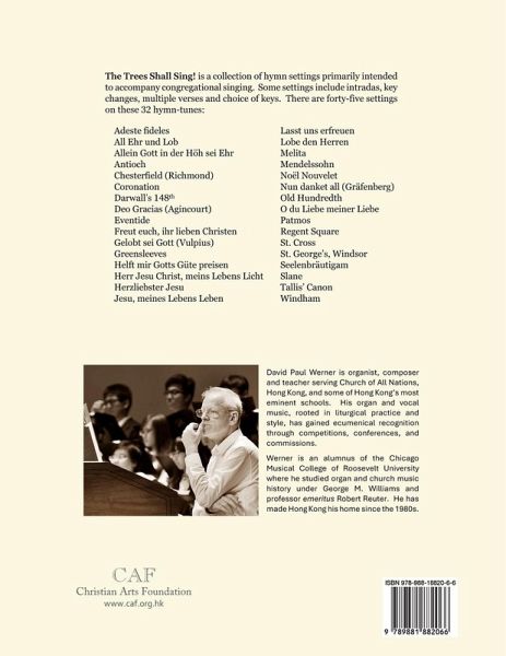 The Trees Shall Sing! Hymn Accompaniments for Organ includes 45 settings on 32 enduring hymn tunes crafted to support and uplift congregational singing. Settings are conveniently arranged in alphabetical order by tune name. They are styled to transition smoothly from harmonizations found in widely used hymnals. Some settings include introductions, key changes, multiple verses and choice of keys. By adjusting tempos and registrations, they are useful as preludes, interludes, postludes, etc., or as mini-etudes for teaching. Many settings offer ready opportunities for instrumentalists to join, and some settings can be sung in parts. They range in difficulty from sight-readable to advanced-intermediate, with an average difficulty of easy-intermediate.