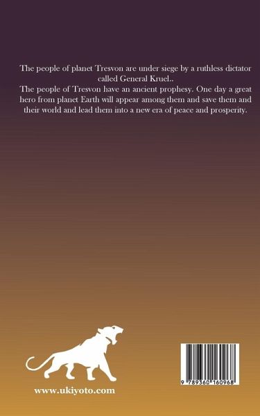 "The people of planet Tresvon are under siege by a ruthless dictator called General Kruel.. The people of Tresvon have an ancient prophesy. One day a great hero from planet Earth will appear among them and save them and their world and lead them into a new era of peace and prosperity."