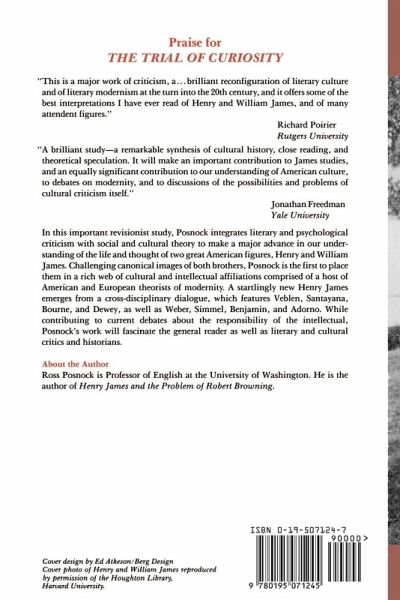 In this important revisionist study, Posnock integrates literary and psychological criticism with social and cultural theory to make a major advance in our understanding of the life and thought of two great American figures, Henry and William James. Challenging canonical images of both brothers, Posnock is the first to place them in a rich web of cultural and intellectual affiliations comprised of a host of American and European theorists of modernity. A startling new Henry James emerges from a cross - disciplinary dialogue, which features Veblen, Suntan, Bourn, and Dewey, as well as Weber, Simmer, Benjamin, and Adorn. While contributing to current debates about the responsibility of the intellectual, Posnock's work will fascinate the general reader as well as literary and cultural critics and historians.