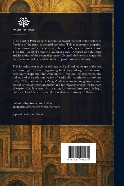 "The Trial of Peter Zenger" recounts a pivotal moment in the history of freedom of the press in colonial America. This meticulously prepared edition brings to life the story of John Peter Zenger, a printer whose 1735 trial for libel became a landmark case. Accused of publishing articles critical of the colonial governor, Zenger's defense challenged the very definition of libel and the right to openly criticize authority. This historical text explores the legal and political landscape of the era, shedding light on the burgeoning fight for civil rights that would eventually shape the First Amendment. Explore the arguments, the stakes, and the enduring legacy of a trial that continues to resonate today. "The Trial of Peter Zenger" offers a fascinating glimpse into a crucial period of American history and the ongoing struggle for freedom of expression. It is essential reading for anyone interested in legal history, colonial America, and the foundations of American liberty. This work has been selected by scholars as being culturally important, and is part of the knowledge base of civilization as we know it. This work is in the public domain in the United States of America, and possibly other nations. Within the United States, you may freely copy and distribute this work, as no entity (individual or corporate) has a copyright on the body of the work. Scholars believe, and we concur, that this work is important enough to be preserved, reproduced, and made generally available to the public. We appreciate your support of the preservation process, and thank you for being an important part of keeping this knowledge alive and relevant.