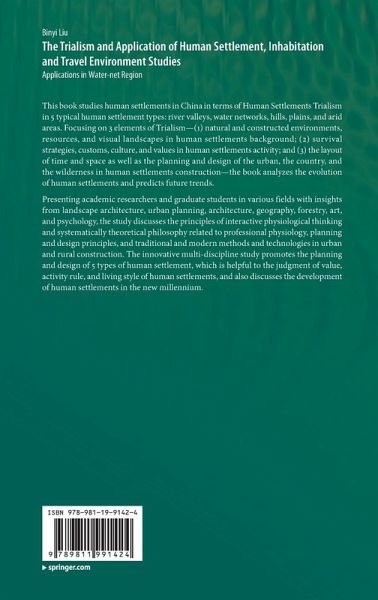 Chinese Human Settlements Philosophy.- The Origin of Trailism of Human Settlement, Inhabitation and Travel Environment.- Three elements and Main Factors Analysis on Human Settlement, Inhabitation and Travel Environment.- The Evolution of the Human Settlement, Inhabitation and Travel Environment Theory.- The Classification and Characteristics of the Human Settlement, Inhabitation and Travel Environment Background.- Analysis and Evaluation on Activity in Human Settlement, Inhabitatin and Travel Environment.- Human Settlement, Inhabitation and Travel Environment Construction Theory and Technology.-Human Settlement, Inhabitation and Travel Environment Studies in Water-net Region.- Human Settlement, Inhabitation and Travel Environment Studies in Valley Region.