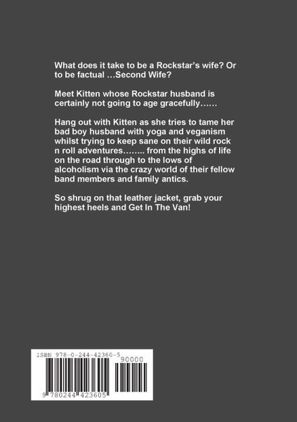 What does it take to be a Rockstar's wife? Or to be factual ...Second Wife? Meet Kitten whose Rockstar husband is certainly not going to age gracefully......Hang out with Kitten as she tries to tame her bad boy husband with yoga and veganism whilst trying to keep sane on their wild rock n roll adventures........ from the highs of life on the road through to the lows of alcoholism via the crazy world of their fellow band members and family antics. So shrug on that leather jacket, grab your highest heels and Get In The Van!