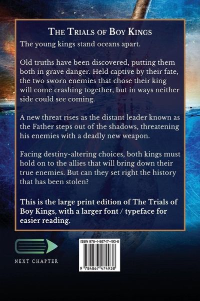 The young kings stand oceans apart. Old truths have been discovered, putting them both in grave danger. Held captive by their fate, the two sworn enemies that chose their king will come crashing together, but in ways neither side could see coming. A new threat rises as the distant leader known as the Father steps out of the shadows, threatening his enemies with a deadly new weapon. Facing destiny-altering choices, both kings must hold on to the allies that will bring down their true enemies. But can they set right the history that has been stolen? This is the large print edition of The Trials of Boy Kings, with a larger font / typeface for easier reading.¿