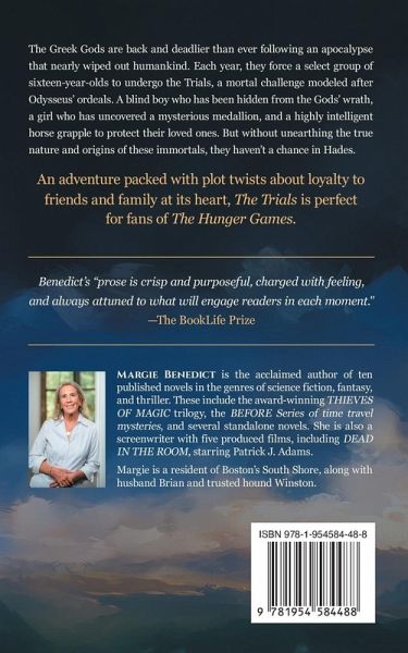 The Greek gods are back and deadlier than ever following an apocalypse that nearly wiped out humankind. Each year, they force a select group of sixteen-year-olds to undergo the Trials, a mortal challenge modeled after Odysseus' ordeals. A blind boy who has been hidden from the gods' wrath, a girl who's uncovered a mysterious medallion, and a highly intelligent horse grapple to protect their loved ones. But without unearthing the true nature and origins of these immortals, they haven't a chance in Hades. An adventure packed with plot twists about loyalty to friends and family at its heart, The Trials is perfect for fans of The Hunger Games. Benedict's "prose is crisp and purposeful, charged with feeling, and always attuned to what will engage readers in each moment." -The BookLife Prize Buy now to experience a breathtaking new fantasy series from the author of the award-winning Thieves of Magic Trilogy.