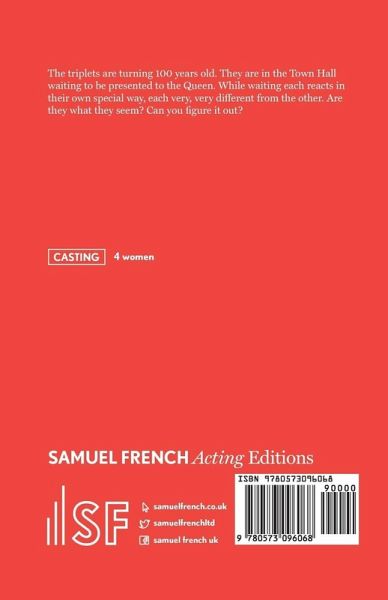 The triplets are turning 100 years old. They are in the Town Hall waiting to be presented to the Queen. While waiting each reacts in their own special way, each very, very different from the other. Are they what they seem? Can you figure it out? 4 women