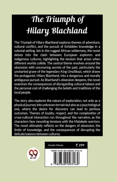 The Triumph of Hilary Blachland explores themes of adventure, cultural conflict, and the pursuit of forbidden knowledge in a colonial setting. Set in the rugged African wilderness, the novel delves into the clash between European explorers and indigenous cultures, highlighting the tension that arises when different worlds collide. The central theme revolves around the obsession with uncovering secrets of the past, particularly the uncharted grave of the legendary King Umzilikazi, which draws the protagonist, Hilary Blachland, into a dangerous and morally ambiguous pursuit. As Blachland's obsession deepens, the novel examines the consequences of disregarding cultural taboos and the personal cost of challenging the beliefs and traditions of the local people. The story also explores the nature of exploration, not only as a physical journey into unknown terrain but also as a psychological one, where the desire for discovery can lead to perilous outcomes. Themes of loyalty, respect, and the complexities of cross-cultural interaction run throughout the narrative, as the characters face mounting tensions with the Matabele warriors. The novel ultimately reflects on the dangers of obsession, the limits of knowledge, and the consequences of disrupting the delicate balance between cultures.