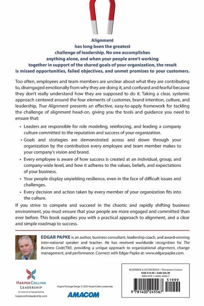 It cannot be overemphasized how important it is for leaders to ensure the company's mission is manifested in the roles, expectations, and goals of every member of the organization. Companies live or die based on their ability to communicate and deliver on the promise their brand makes to its customers. But if that message is varied, or added to, or even unknown by a single member of the team, the resulting inefficiency, conflict, and disengagement will cripple a company's ability to provide value to its customers. True Alignment reveals the blueprint for businesses of all types and sizes for creating a company culture where everyone is aligned to the vision and strategy behind the brand intention and responsible for living out the brand promise. You will learn how to: Decipher customer expectations Define the brand as a solution to the customer's needs Turn the unique selling proposition into the mission And much more You can replace the tires on a car, but if you don't fix the alignment, you still won't drive straight. The same goes for your company. Nothing else matters until the entire organization is aligned.