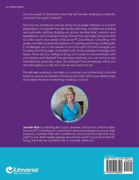 Are you ready to become more fully self-aware, embrace creativity, and feel thoroughly inspired? The True You Workbook can be done as a 6-week intensive or 6-month exploration of yourself that will be life affirming, confidence building and spiritually uplifting. Building on author Jennifer Blair's wisdom and experience-accumulated through the last two decades during her time as a life coach and owner of Excavive Coaching & Consulting-this guide considers six essential aspects of creating and living a fulfilling life. It challenges you to be aware of your thoughts and encourages you to replace limiting logic and beliefs with empowering knowledge and ideas. What are you willing to let go of in order to move forward with your dreams and desires? Through these methods, you can come to see the brilliance, potential, value, and strength that are already within you and reimagine your life as it was always meant to be. This self-help workbook can help you uncover your authenticity, cultivate balance, pursue your passion, enhance your work, enrich your relationships, and break free from everything holding you back.