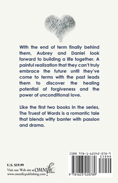 With the end of term finally behind them, Aubrey and Daniel look forward to building a life together. A painful realization that they can't truly embrace the future until they've come to terms with the past leads them to discover the healing potential of forgiveness and the power of unconditional love. Like the first two books in the series, The Truest of Words is a romantic tale that blends witty banter with passion and drama.
