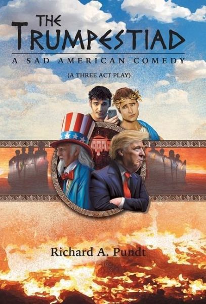 Unexpectedly, the ancient Greek God, Apollo, receives an inadvertent tweet from Donald Trump asking him to attend a White House rally. While there, Apollo encounters a personification of Dearth who received a similar tweet. The two overhear an argument between Donald Trump and Uncle Sam regarding the eight Pillars of Truth (Ethics, Integrity, Honesty, Loyalty, Courtesy, Reverence, Honor, and Justice) who President Trump has sent to hell. When Apollo, Dearth, and Uncle Sam decide to travel to hell to retrieve the Pillars of Truth, they meet Hades who is unable to find a place for the radiant Pillars. After listening to a discussion between Hades and each of the Pillars, Apollo devises a plan to bring the Pillars back to the United States. When Apollo, Uncle Sam, Dearth, and the Pillars of Truth return to the White House, the Greek God's plan unfurls as he involves twelve of Trump's followers, as a jury, and eventually has Dearth escort Trump, Fruity Rudy, Moscow Mitch, Bad Bar, and the Fox to see Hades. But what will happen when the audience becomes part of the plan? The Trumpestiad is a timely political satire that humorously brings into focus many of the bizarre events that have taken place in the United States for the past three years.