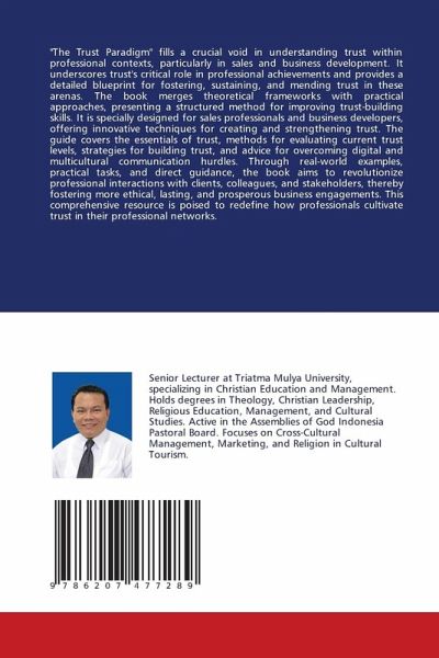 "The Trust Paradigm" fills a crucial void in understanding trust within professional contexts, particularly in sales and business development. It underscores trust's critical role in professional achievements and provides a detailed blueprint for fostering, sustaining, and mending trust in these arenas. The book merges theoretical frameworks with practical approaches, presenting a structured method for improving trust-building skills. It is specially designed for sales professionals and business developers, offering innovative techniques for creating and strengthening trust. The guide covers the essentials of trust, methods for evaluating current trust levels, strategies for building trust, and advice for overcoming digital and multicultural communication hurdles. Through real-world examples, practical tasks, and direct guidance, the book aims to revolutionize professional interactions with clients, colleagues, and stakeholders, thereby fostering more ethical, lasting, and prosperous business engagements. This comprehensive resource is poised to redefine how professionals cultivate trust in their professional networks.