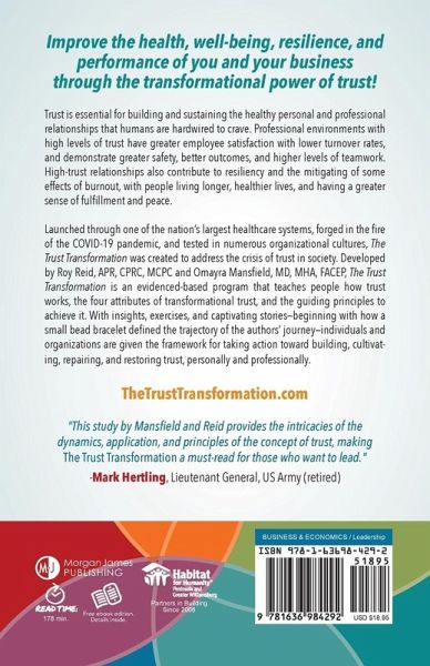 The Trust Transformation unveils a revolutionary approach to fostering deeper connections and achieving success in one's personal and professional life.The Trust Transformation emerged as an evidence-based training program at AdventHealth during the COVID-19 pandemic, teaching the power and principles of interpersonal trust. Initially offered as a four-hour class for employees and delivered as a workshop for leadership teams in the organization, thousands of team members have since completed the course. Since its launch, the program has been tested in numerous business and organizational cultures. Now, creators Roy Reid and Dr. Omayra Mansfield offer these principles to all who want to understand how trust works and how to make it work for them. Their groundbreaking work explores the four attributes of transformational trust and the guiding principles to achieve it in one’s life. They also share insights and exercises to build, cultivate, repair, and restore trust in both personal and professional relationships.This science-backed framework supports individuals and organizations seeking to improve their health, well-being, resilience, and performance through the transformational power of trust.