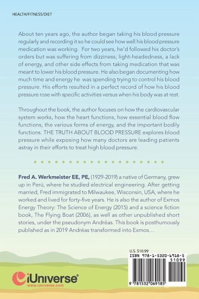 About ten years ago, the author began taking his blood pressure regularly and recording it so he could see how well his blood pressure medication was working. For two years, he'd followed his doctor's orders but was suffering from dizziness, light-headedness, a lack of energy, and other side effects from taking medication that was meant to lower his blood pressure. He also began documenting how much time and energy he was spending trying to control his blood pressure. His efforts resulted in a perfect record of how his blood pressure rose with specific activities versus when his body was at rest. Throughout the book, the author focuses on how the cardiovascular system works, how the heart functions, how essential blood flow functions, the various forms of energy, and the important bodily functions. THE TRUTH ABOUT BLOOD PRESSURE explores blood pressure while exposing how many doctors are leading patients astray in their efforts to treat high blood pressure.