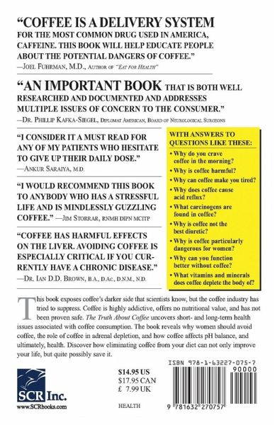 The Truth About Coffee exposes coffee's darker side that scientists know but that the beverage, confectionery and pharmaceutical industries have tried to suppress. Coffee is a highly addictive drug, does not offer any nutritional value and has not been proven safe. Epidemiological, clinical and laboratory studies link caffeine found in coffee leads to heart disease, pancreas cancer, bladder cancer, hypoglycemia and central nervous system disorders.