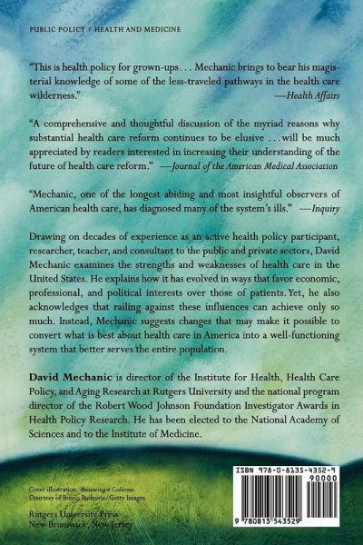 Bringing decades of experience as a health policy participant, researcher, teacher, and consultant to the public and private sectors, Mechanic examines the strengths and weaknesses of our system and how it has evolved. He pays attention to areas often neglected in policy discussions, like the loss of trust in medicine, the tragic state of long-term care, and the relationship of mental health to health care. Mechanic describes how health plans, professionals, policy makers, and consumer groups can work to improve health outcomes in America.