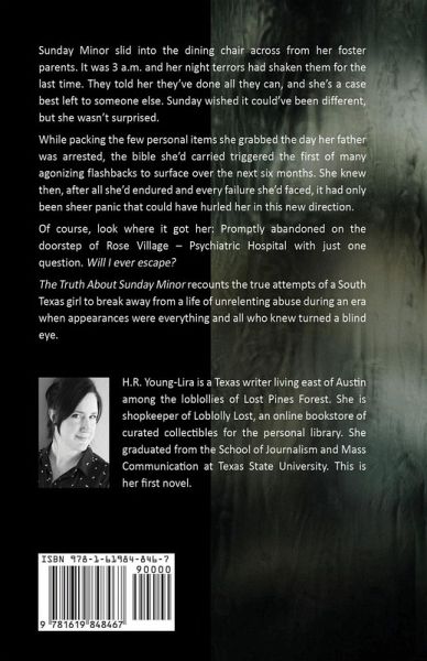 Sunday Minor slid into the dining chair across from her foster parents. It was 3 a.m. and her night terrors had shaken them for the last time. They told her they’ve done all they can, and she’s a case best left to someone else. Sunday wished it could’ve been different, but she wasn’t surprised. While packing the few personal items she grabbed the day her father was arrested, the bible she’d carried triggered the first of many agonizing flashbacks to surface over the next six months. She knew then, after all she’d endured and every failure she’d faced, it had only been sheer panic that could have hurled her in this new direction. Of course, look where it got her: Promptly abandoned on the doorstep of Rose Village – Psychiatric Hospital with just one question. Will I ever escape? The Truth About Sunday Minor recounts the true attempts of a South Texas girl to break away from a life of unrelenting abuse during an era when appearances were everything and all who knew turned a blind eye.