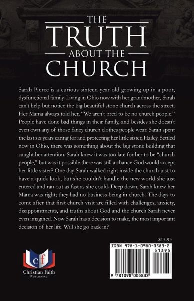 Sarah Pierce is a curious sixteen-year-old growing up in a poor, dysfunctional family. Living in Ohio now with her grandmother, Sarah can't help but notice the big beautiful stone church across the street. Her Mama always told her, "We aren't bred to be no church people." People have done bad things in their family, and besides she doesn't even own any of those fancy church clothes people wear. Sarah spent the last six years caring for and protecting her little sister, Hailey. Settled now in Ohio, there was something about the big stone building that caught her attention. Sarah knew it was too late for her to be "church people," but was it possible there was still a chance God would accept her little sister? One day Sarah walked right inside the church just to have a quick look, but she couldn't handle the new world she just entered and ran out as fast as she could. Deep down, Sarah knew her Mama was right; they had no business being in church. The days to come after that first church visit are filled with challenges, anxiety, disappointments, and truths about God and the church Sarah never even imagined. Now Sarah has a decision to make, the most important decision of her life. Will she go back in?