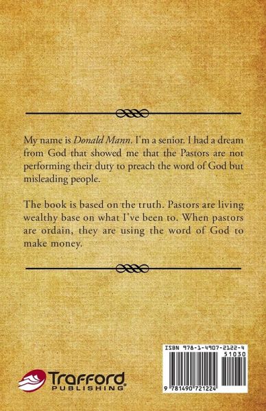 The book is based on the truth. Pastors are living wealthy base on what I've been to. When pastors are ordain, they are using the word of God to make money.