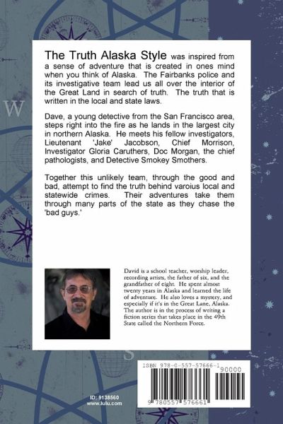 The Truth Alaska Style was inspired from a sense of adventure that is created in ones mind when you think of Alaska. The Fairbanks police and its investigative team lead us all over the interior of the Great Land in search of truth. The truth that is written in the local and state laws. Dave, a young detective from the San Francisco area, steps right into the fire as he lands in the largest city in northern Alaska. He meets his fellow investigators, Lieutenant 'Jake' Jacobson, Chief Morrison, Investigator Gloria Caruthers, Doc Morgan, the chief pathologists, and Detective Smokey Smothers. Together this unlikely team, through the good and bad, attempt to find the truth behind varoius local and statewide crimes. Their adventures take them through many parts of the state as they chase the 'bad guys.'